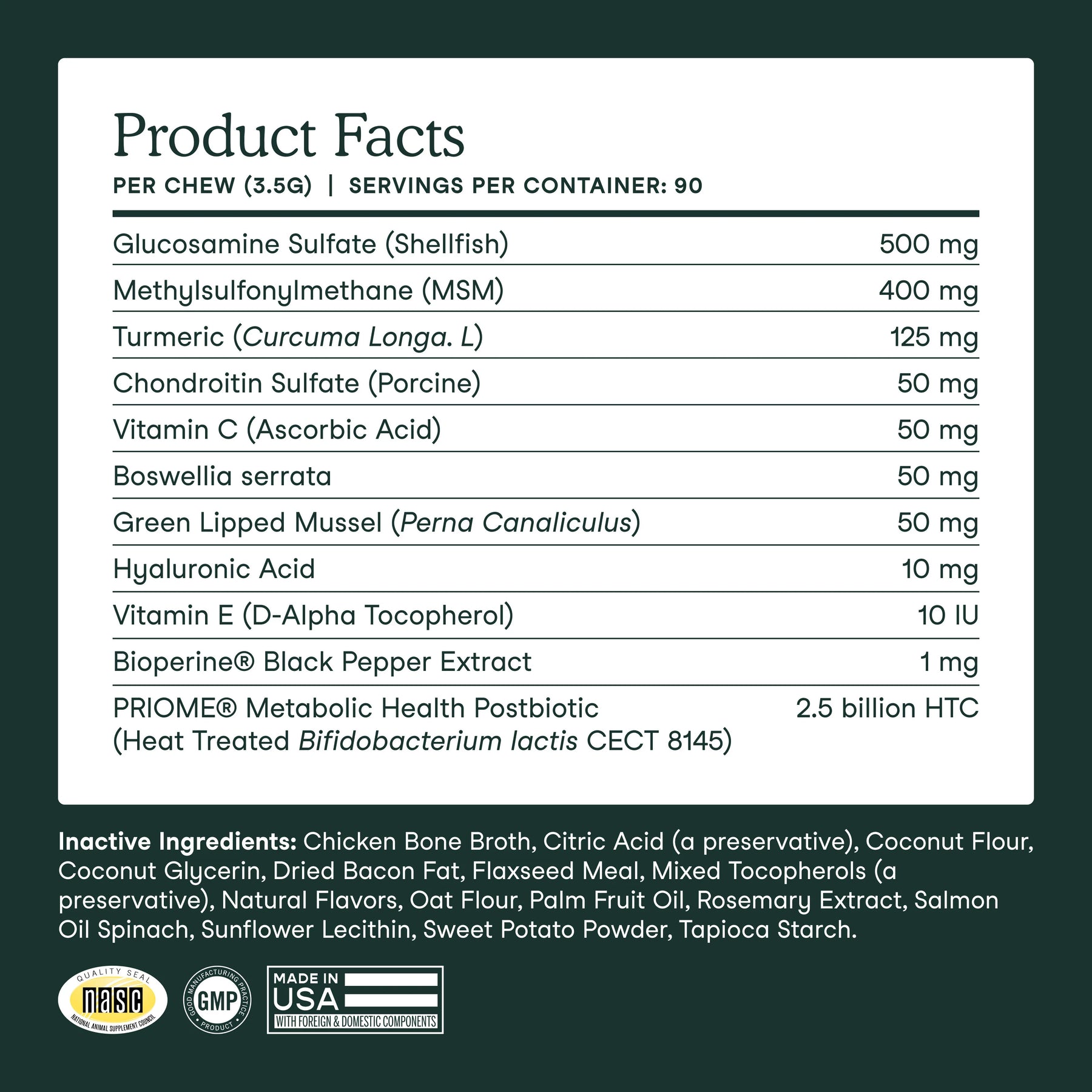 The formula is simple: Superior Glucosamine Sulfate + Chondroitin + MSM + organic turmeric + green-lipped mussel + third-party lab testing. That's it.